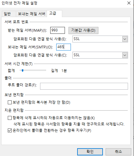 - 받는 메일 서버 : 993