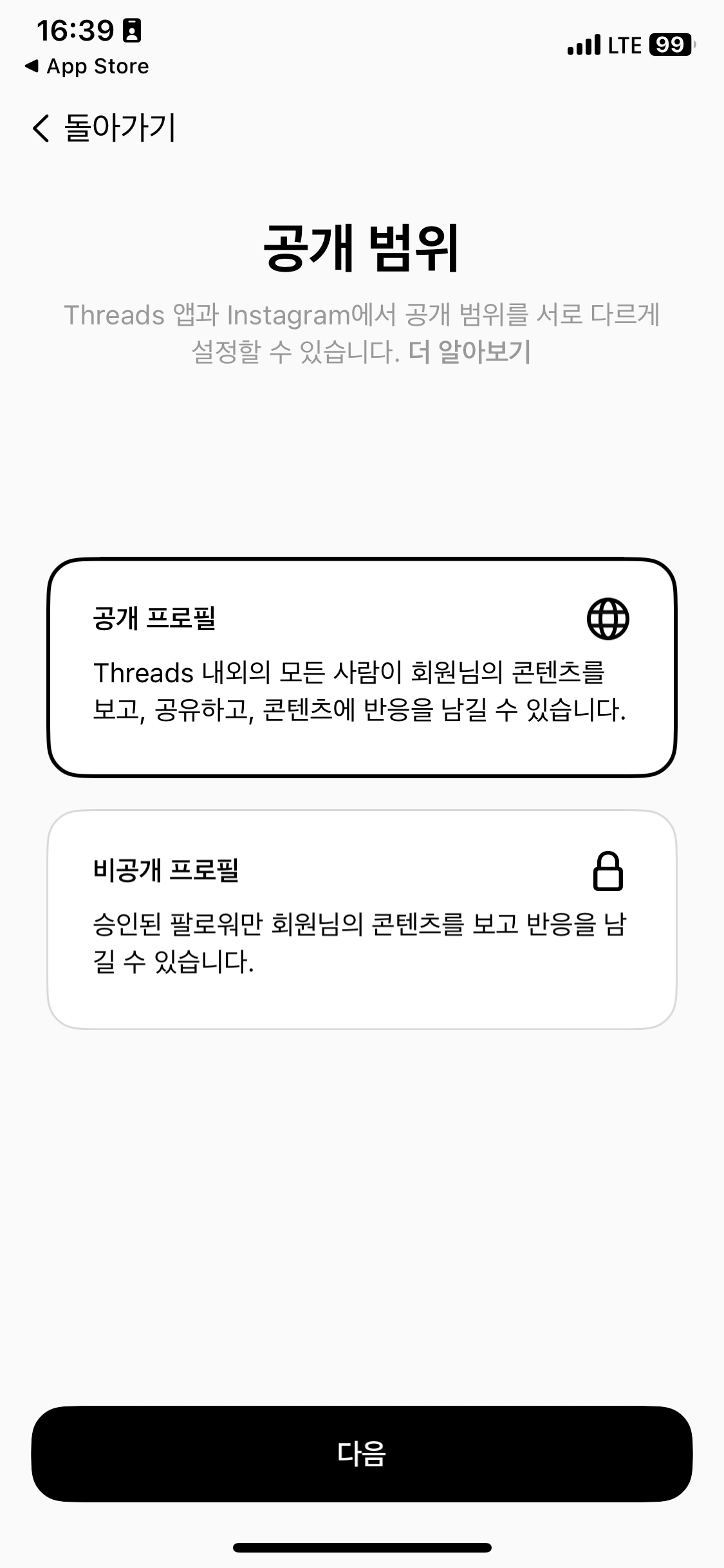 나. 프로필 공개범위 설정 합니다