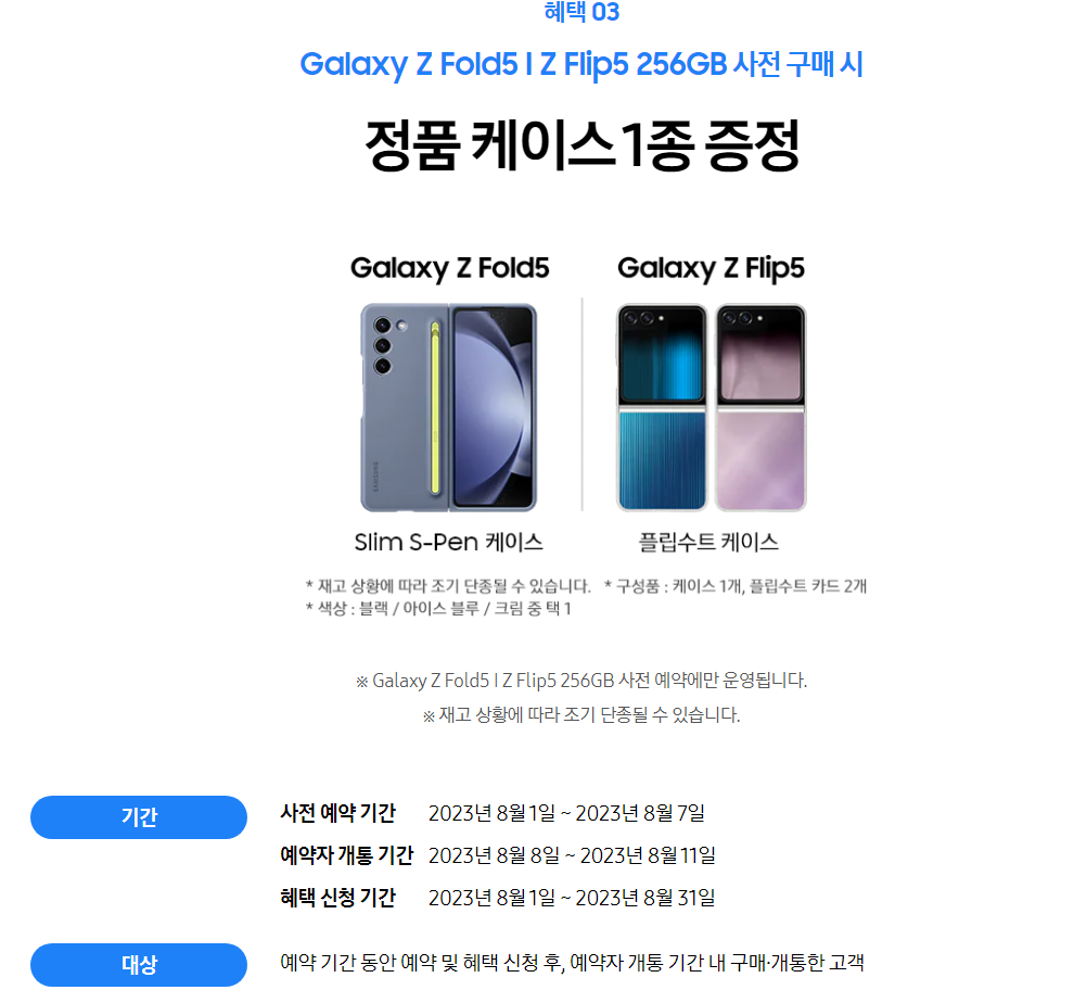 - Gakaxy Z Flip 전용 커스텀 스킨 1종 무상증정 및 부착서비스(1회 한정)